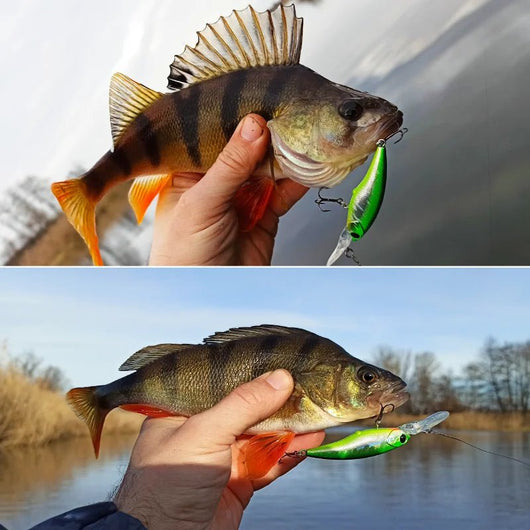 Cores Naturais (Água Clara): prateado, dourado, verde natural para fundos com boa visibilidade — predadores inspecionam de perto antes de atacar.